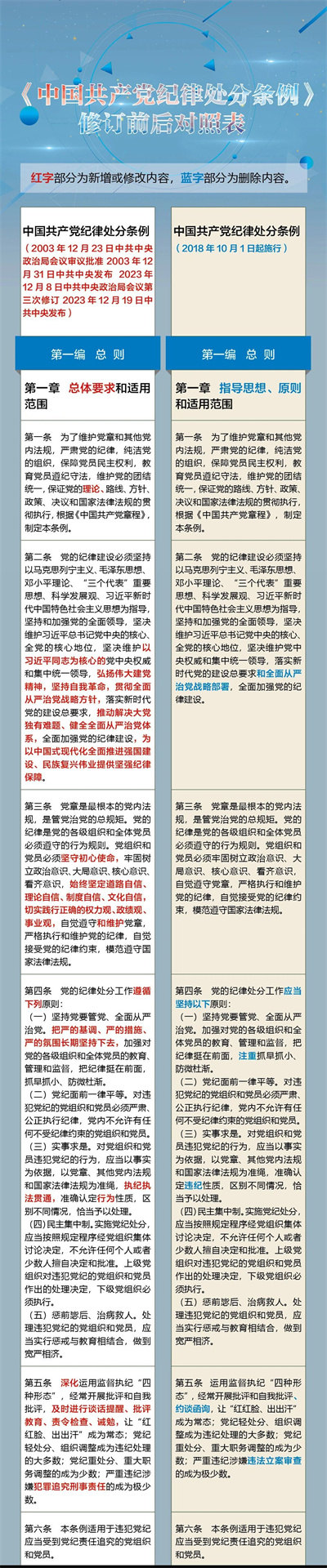 《中国共产党纪律处分条例》修订前后对照表